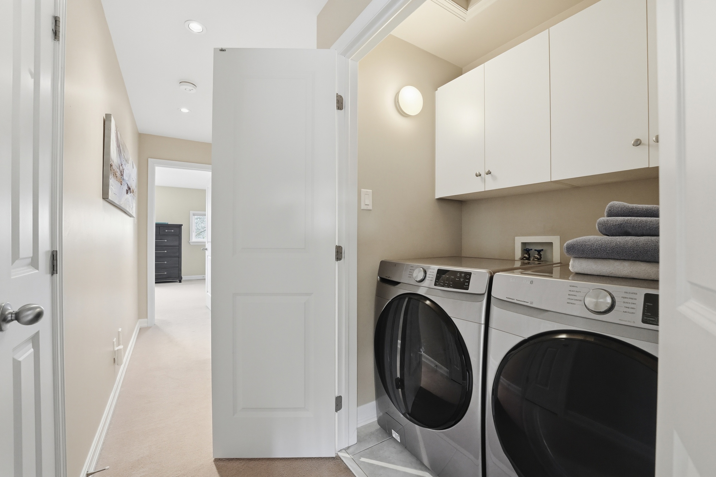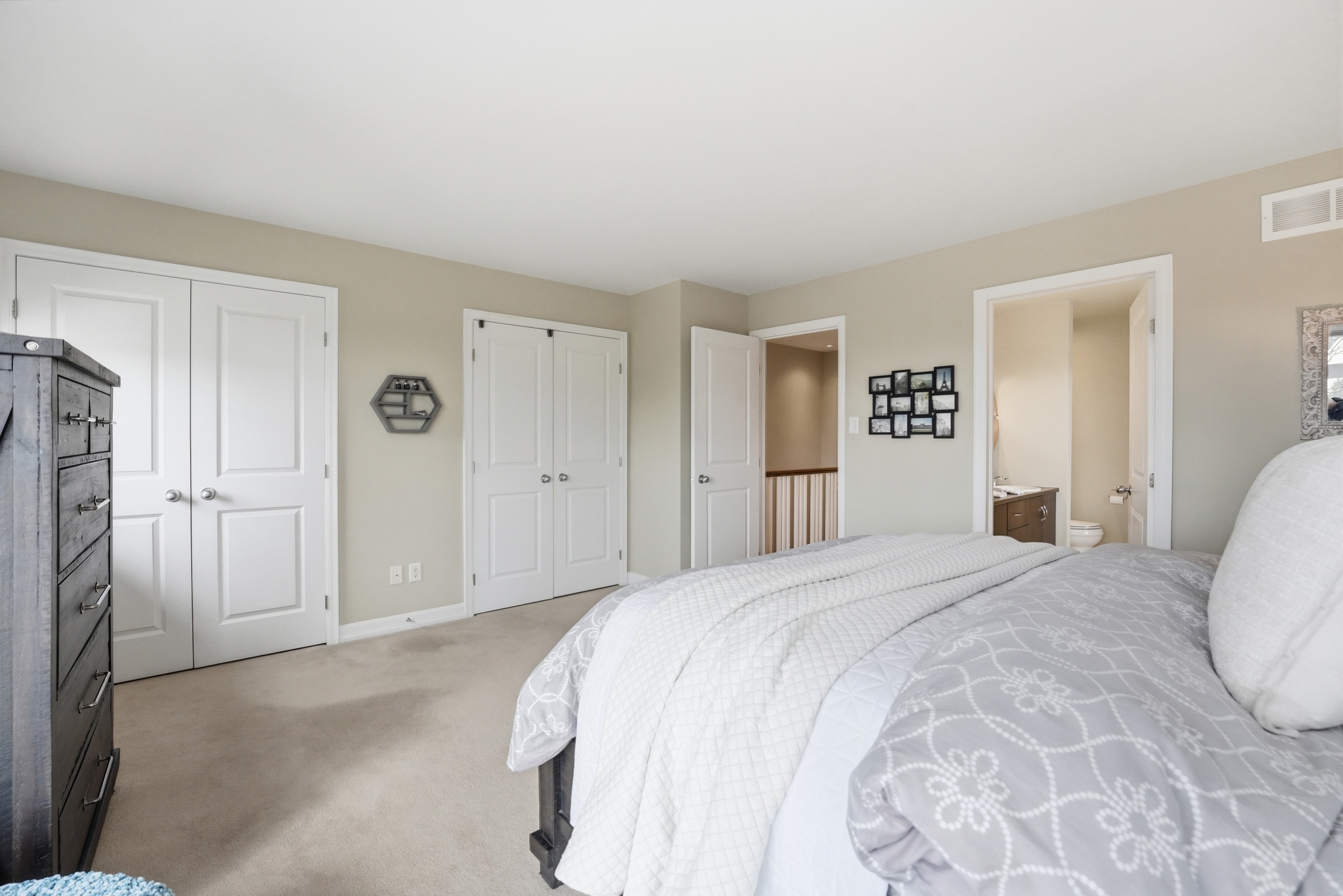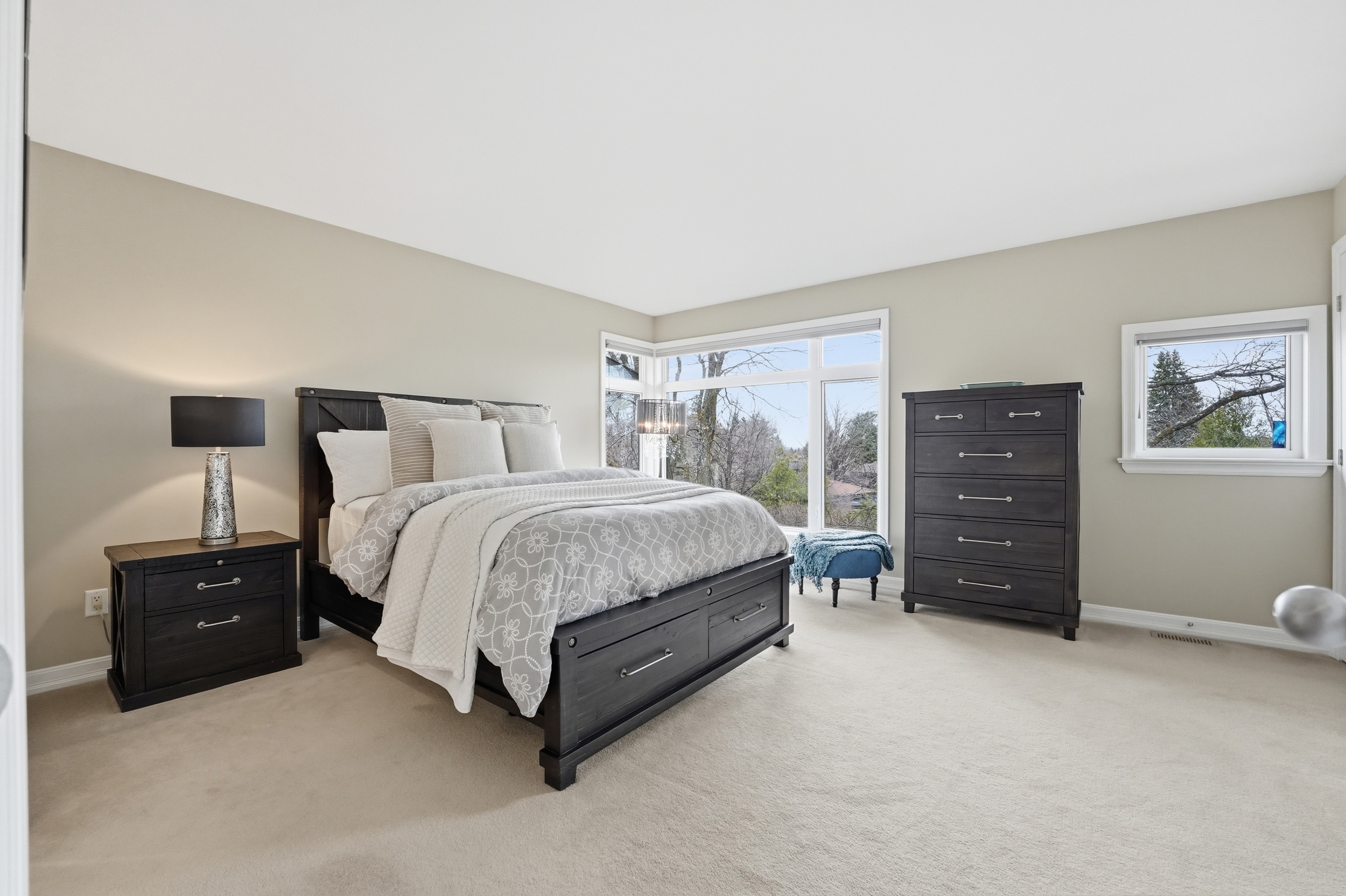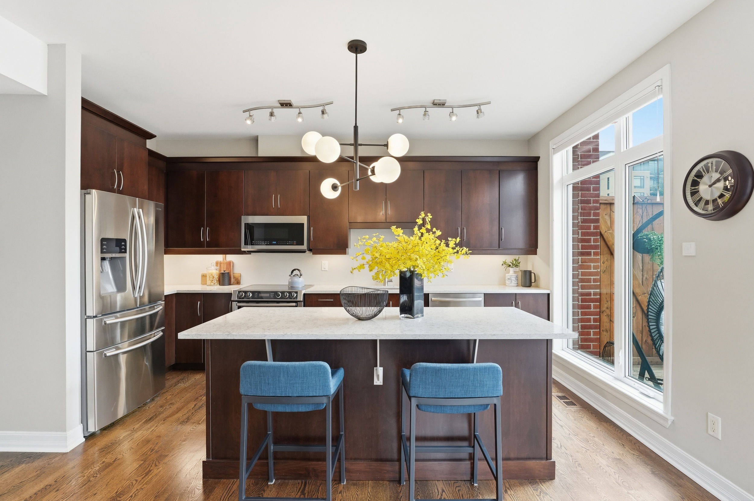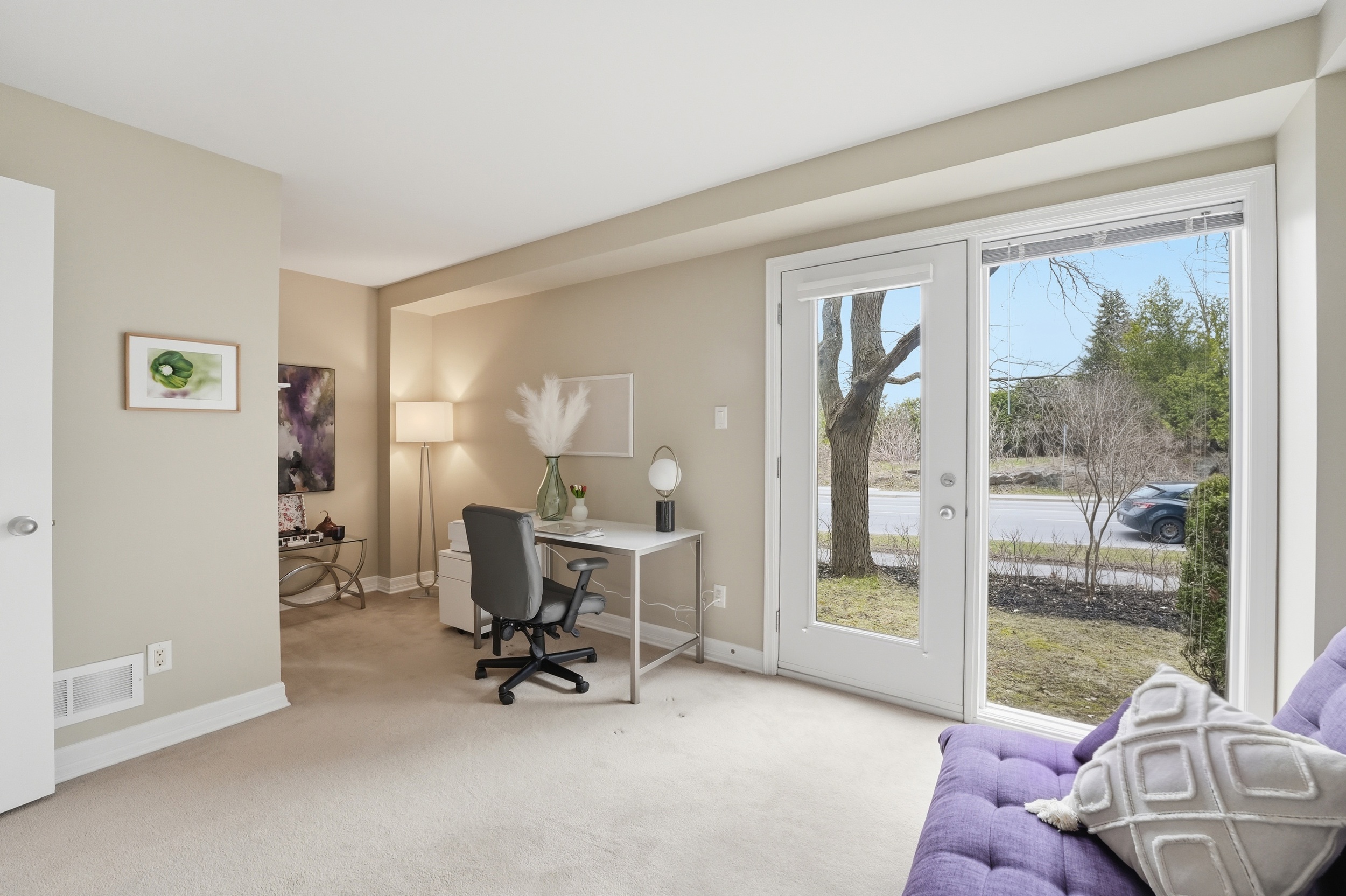 This Uniform-built end unit townhouse, designed by renowned architect Barry Hobin, is set within an exclusive enclave of executive residences in Beaverbrook. Steps to trails with easy access to highway or transit for an easy commute. You immediately notice the natural light-large windows, great exposure, and a layout that just lets the light move through the space. The main floor is where this home really shines. It’s open, functional, and just easy to live in. The kitchen is both stylish and functional, featuring quartz countertops, a large island, ample cupboard space, and access to a spacious balcony. The balcony has a motorized awning and is an ideal spot for your morning coffee! The living and dining areas feature hardwood floors, expansive windows, a hardwood staircase, and a fireplace that anchors the space. Upstairs, you’ll find two spacious, bright bedrooms, each with its own private ensuite. The primary ensuite features a separate tub, large window, double sink, and large shower. The second upstairs bedroom includes its own 3-piece ensuite, making it ideal for guests, family, or shared living. The first floor provides for a 3rd bedroom, a great office or other flex space. The floor also hosts a finished powder room. An unexpected double car garage is a rare bonus, adding even more appeal to this unique home.